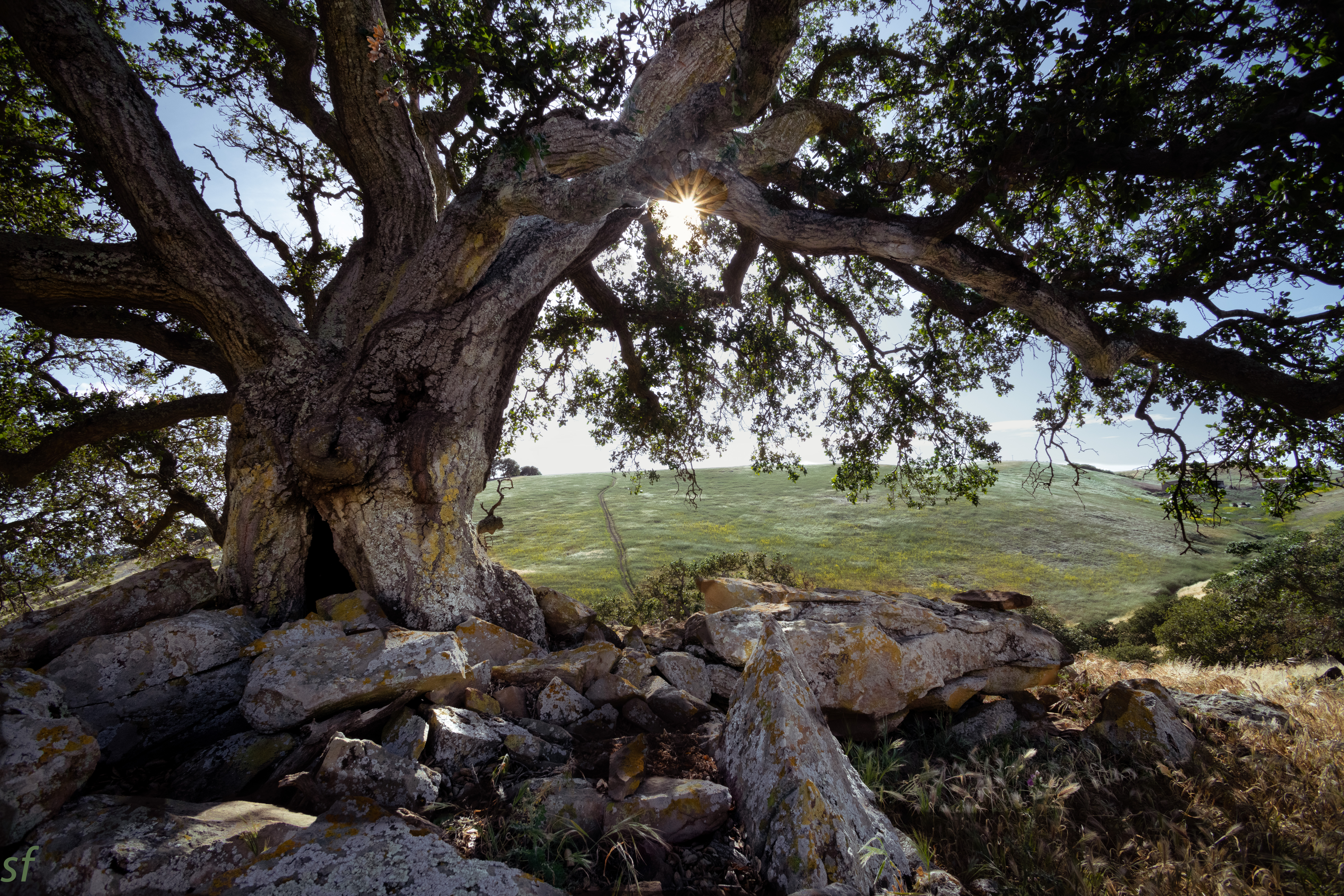 This tree is over a fence and up the slope to the top of Brushy Peak where Murrieta often sat. Ojo de Aguila, Eye of the Eagle was his main reconnaissance. With a fold up telescope, from nearly all of the stations, he could see for miles giving Murrieta time to move the drove to another hideaway in the event that they were pursued.